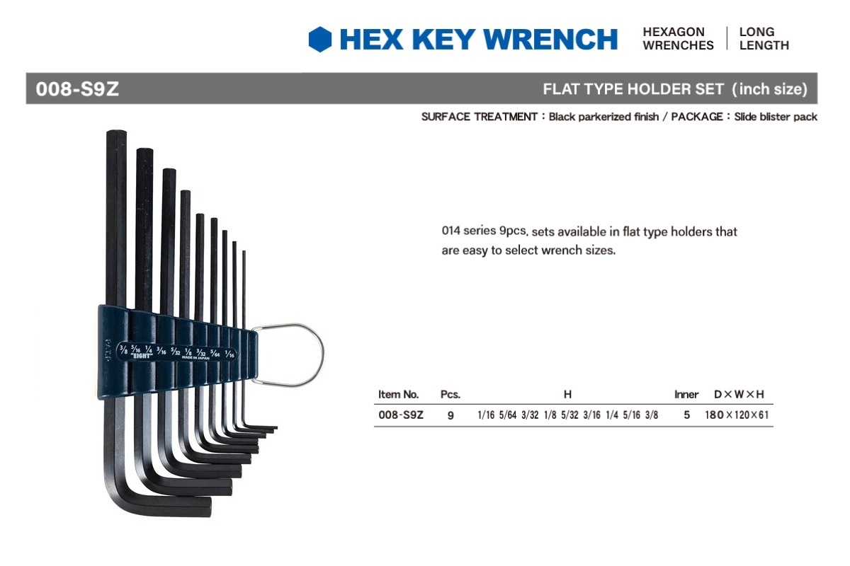 EIGHT 008-S9Z Hex Key Wrench 9pc Flat Type Holder Set