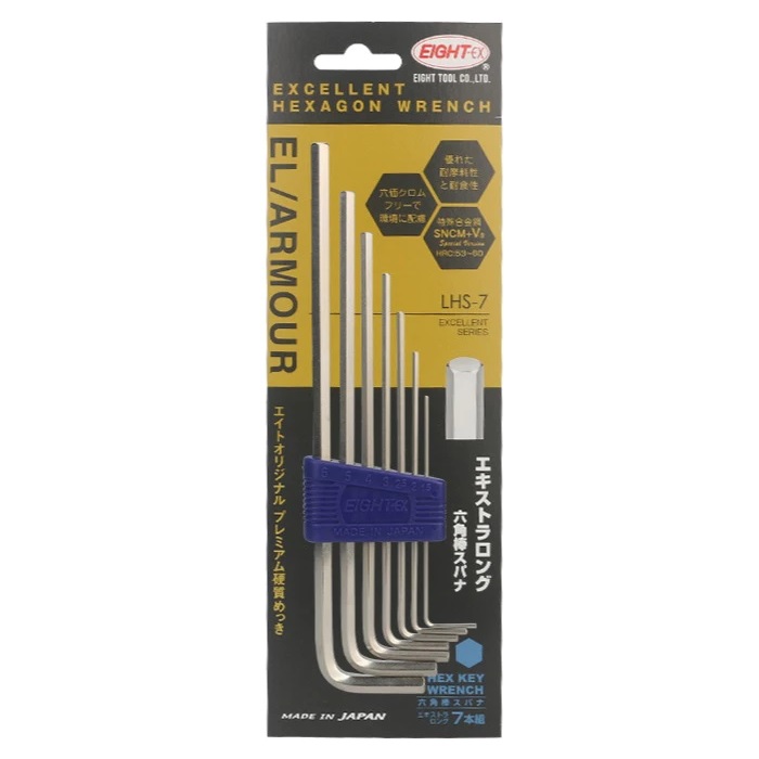 Sizes (mm): 1.5 2 2.5 3 4 5 6 Long portion wrench head : Straight Type Length Type : Extra Long Surface treatment: EL/ARMOUR plated