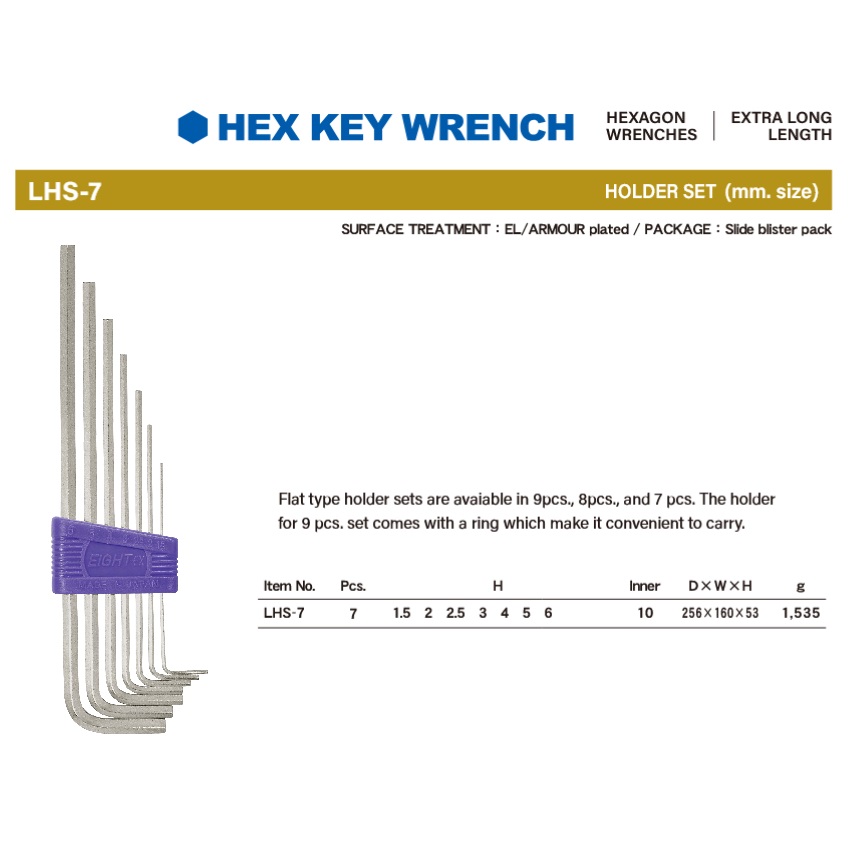 EIGHT LHS-7 Hex Key Wrench 7pc Flat Type Holder Set