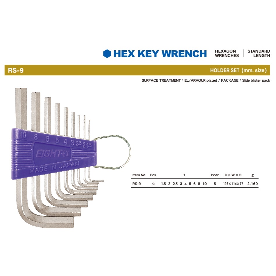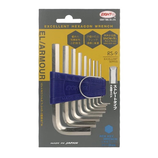 EIGHT RS-9 Hex Key Wrench 9pc Flat Type Holder Set