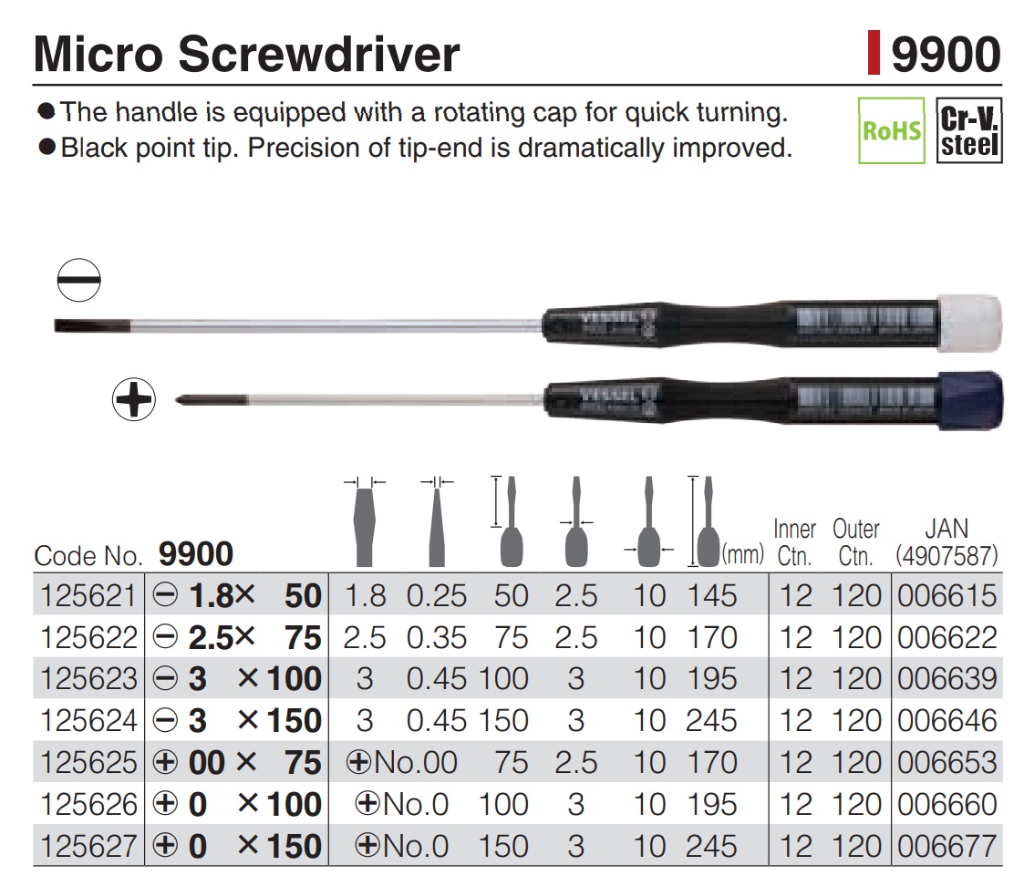 * Equipped with a turning cap for fast turning on the grip. * Remarkably highly precise black point tip.For ultra precision and small screws