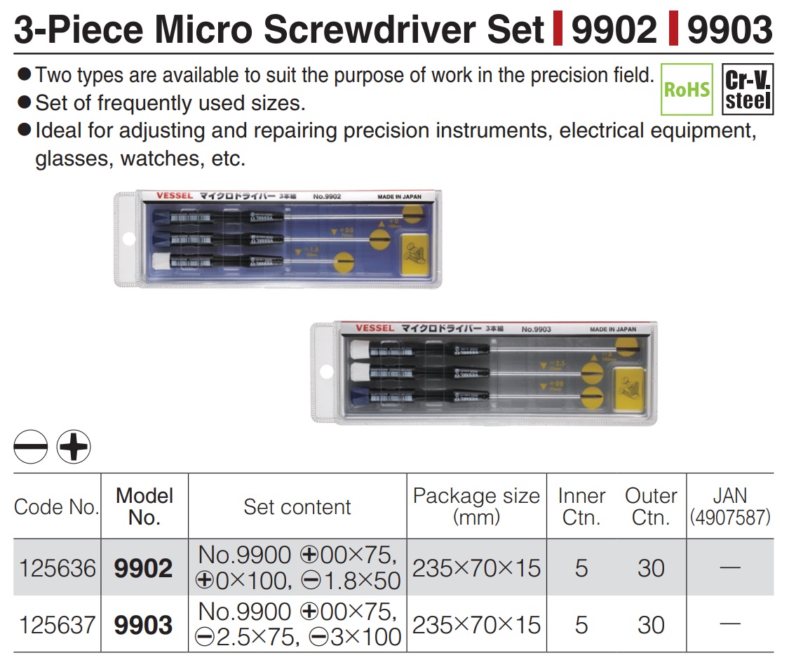 VESSEL NO.9902/9903 3-Piece Micro Screwdriver Set