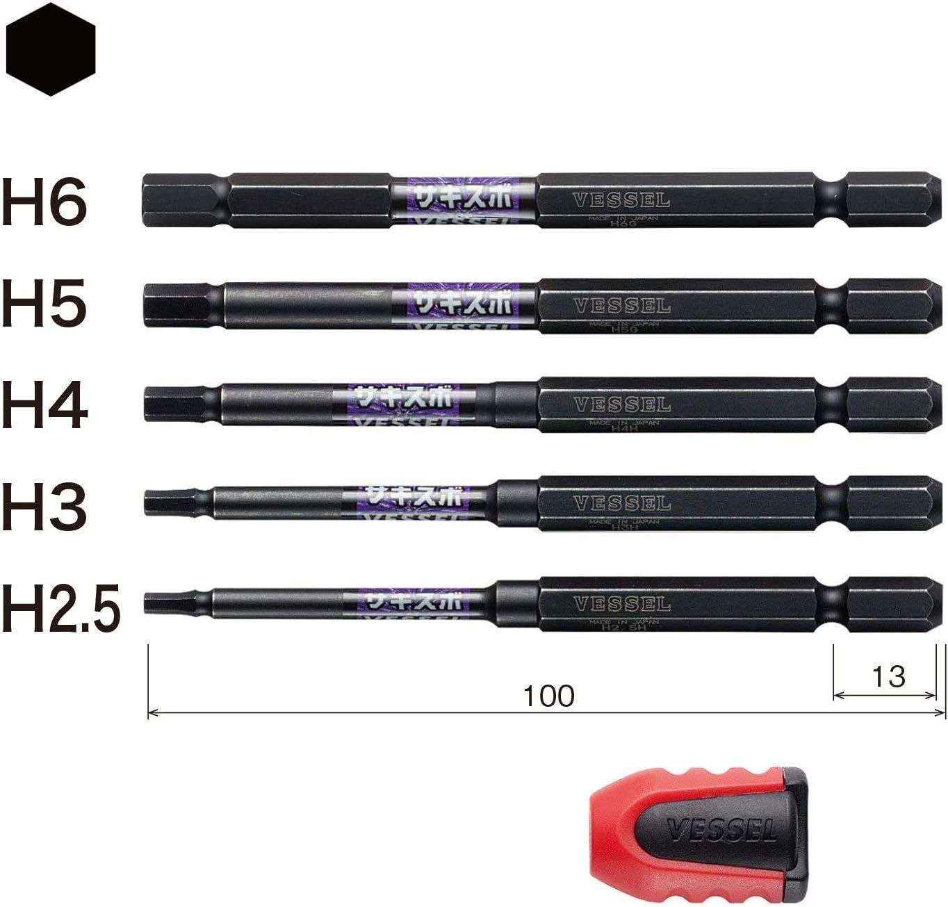 - 2.5/3/4/5/6mmX100mm Single-Sided Hex Bit w/ Magnet Bit Holder.
