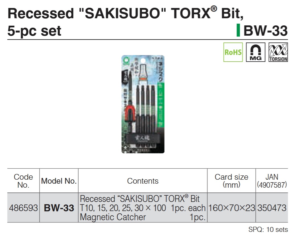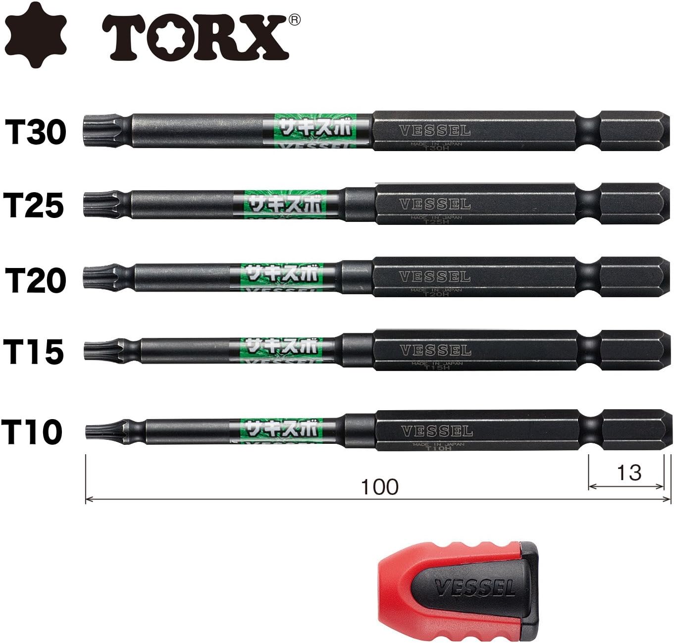 VESSEL No.BW-33 “SAKISUBO” Recessed TORX Bit 5pc Set (Assorted)