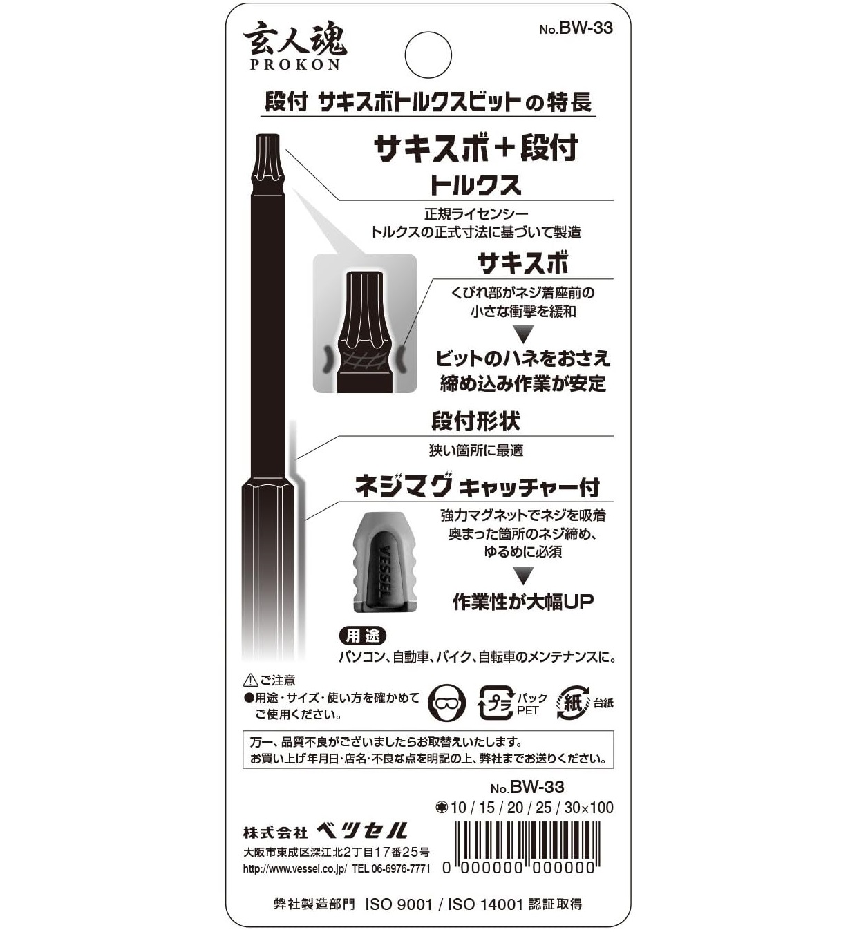 • Standards: T10/T15/T20/T25/T30x100mm