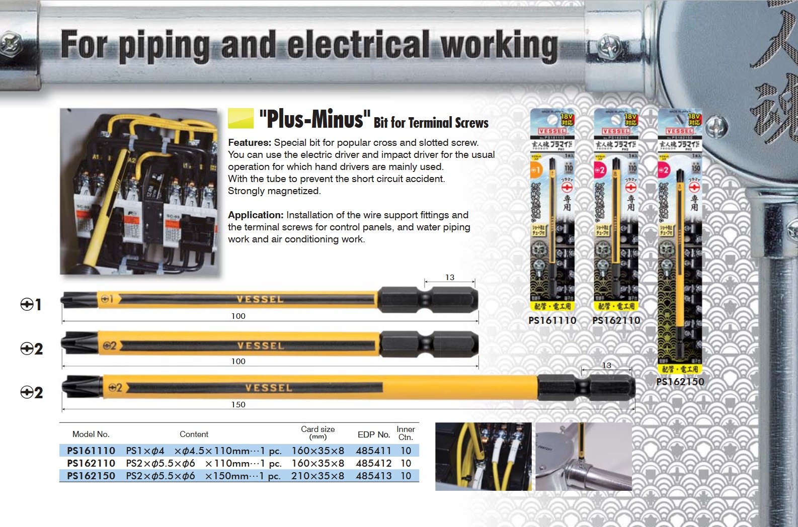 - Suitable for installation of electrical board terminal screws and wire support fittings, water piping, and air conditioning work.
