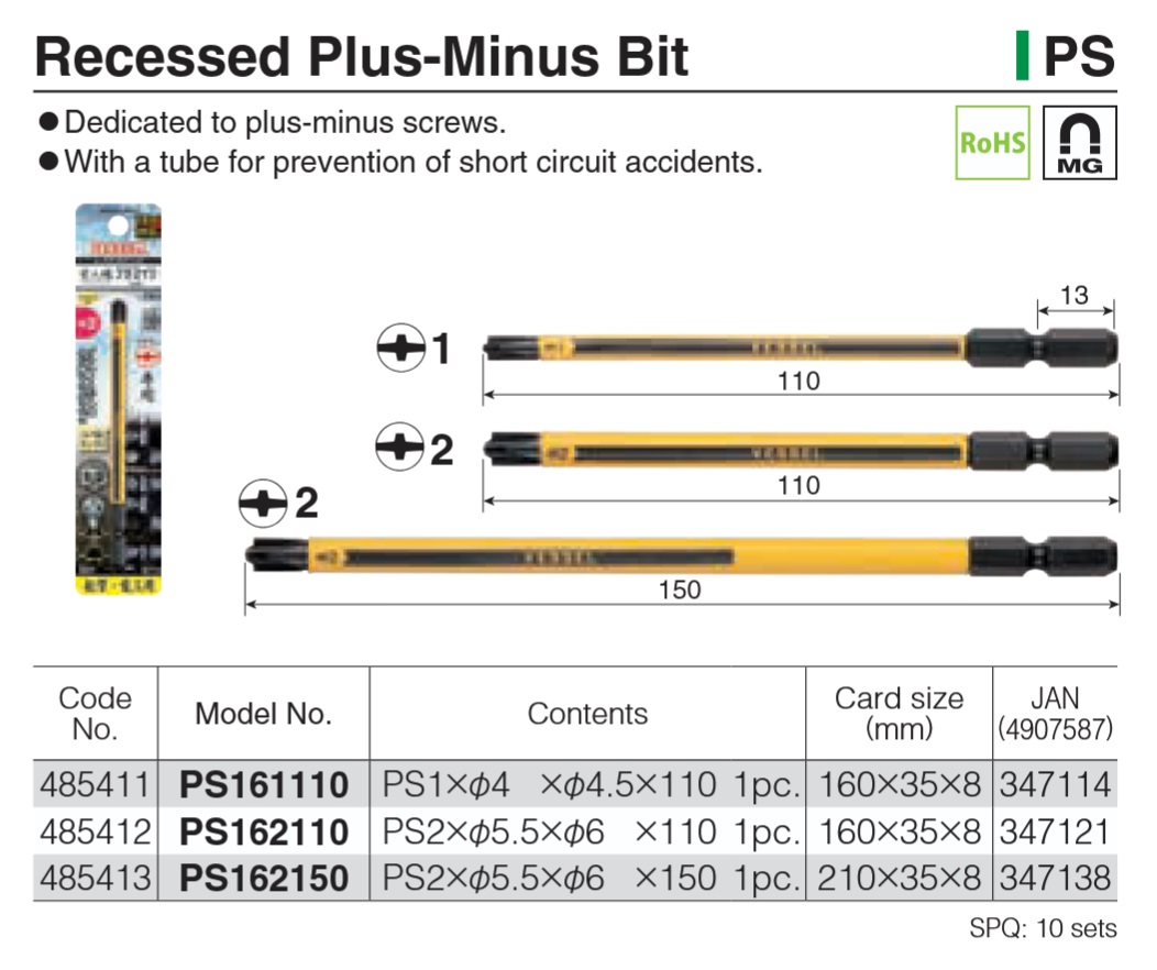 - A bit for use with popular Phillips and minus screws.