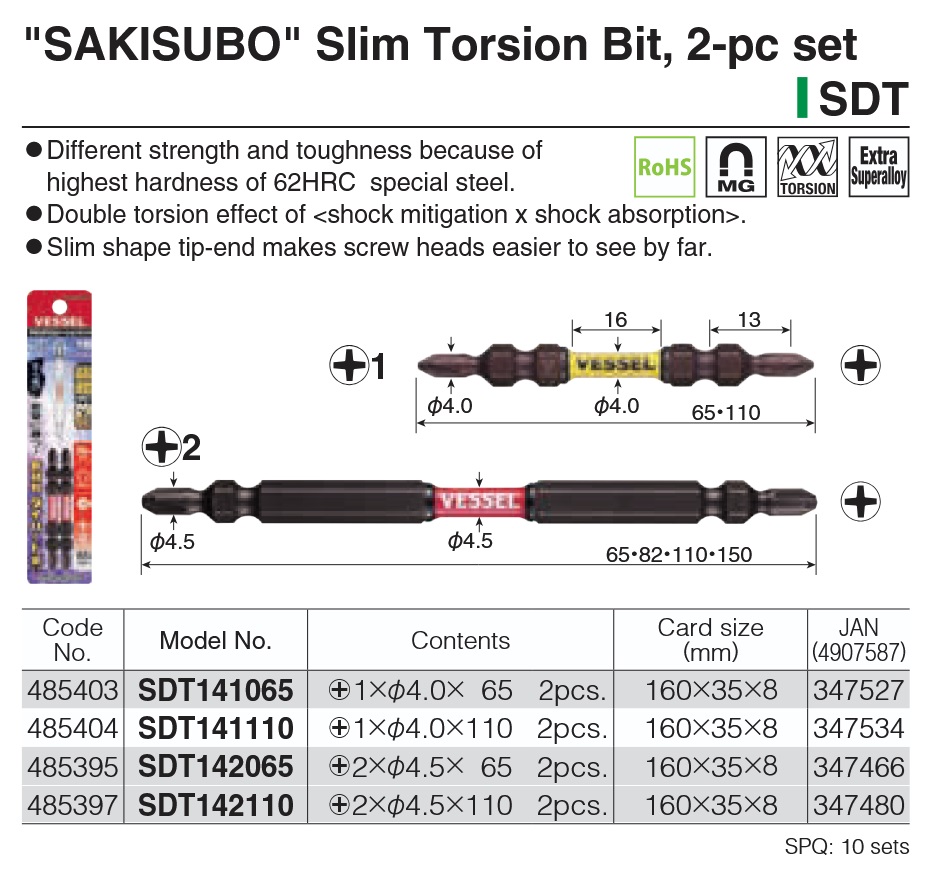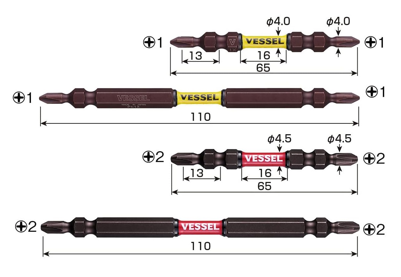 VESSEL No.SDT14 “SAKISUBO” Slender Torsion Bit 2pc Set