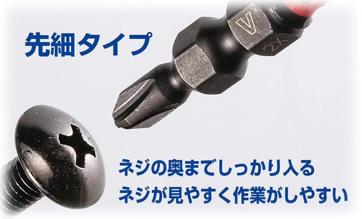 * Tapered tip allows for easy view of screw head and improves working efficiency.