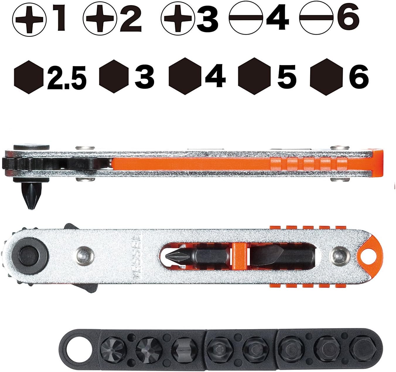 VESSEL No.TD-79 Flat-shaped Ratchet Screwdriver (w/ 11 bits)